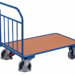 De duwstangwagen heeft twee zwenkwielen en twee bokwielen met voetbescherming.