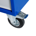 Alle gereedschapswagens werkbank beschikken over 2 bok- en 2 zwenkwielen met rem.