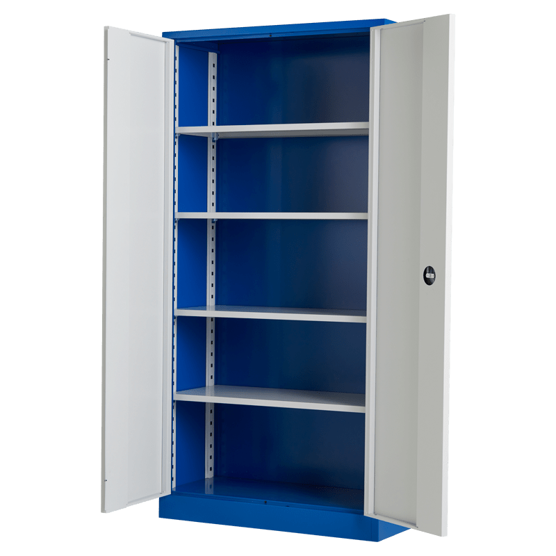 Deze universele opbergkast is voorzien van 4 in hoogte verstelbare legborden. De materiaalkast GMF-401 is 200 cm hoog, 100 cm breed en 45 cm diep. De materiaalkast is voorzien van een cilinderslot dat standaard wordt geleverd met 2 sleutels.
