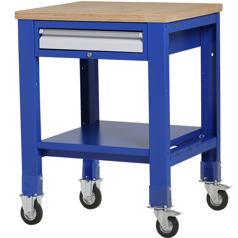 Er zijn drie mobiele verrijdbare werkbanken op wielen in deze productlijn.